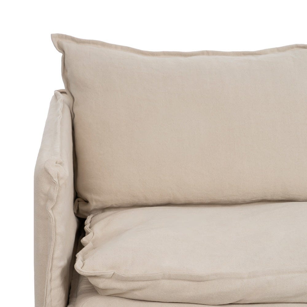 TECIDO: 40% LINHO – 60% ALGODÃO. ESTRUTURA DA TAMPA REMOVÍVEL: MADEIRA DE PINHO. ENCHIMENTO DO ASSENTO: ESPUMA E PENAS. ENCHIMENTO DO ENCOSTO: ESPUMA E PENA. FECHO DAS ALMOFADAS COM ZÍPER. PESO MÁXIMO SUPORTADO: 230KG. DENSIDADE:39KG/M3. LIMPEZA A SECO. NÃO USE FERRO. ALTURA DO ASSENTO:53CM. ALTURA DO APOIO DE BRAÇO: 75CM CUMPRE AS REGULAMENTOS UNE-EN 12520-2016.