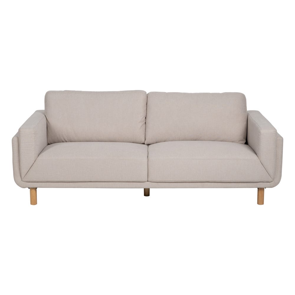 Sofá 3 Lugares Sala Tecido-Madeira Bege 216 X 90 X 82 Cm