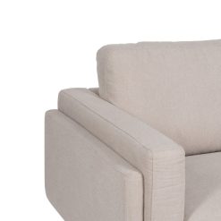Tecido: 94% poliéster – 6% náilon. Peso: 370g/m2. Pernas de madeira. Materiais: Madeira de eucalipto Altura do assento: 45cm. Altura da perna: 14cm. Largura do assento: 178cm. Profundidade do assento: 54cm. Altura do encosto: 45cm. Altura do apoio de braço ao chão: 66cm. Altura do apoio de braço até o assento: 23cm. Pernas para montar, localizadas na base do sofá. Almofadas traseiras removíveis com zíper para lavagem. Almofadas de assento não removíveis. Instruções de lavagem: *pode ser lavado a seco. * Para manchas de água, esfregue com um pano limpo ou seque. *Para outros tipos de manchas, esfregue com pano e detergente neutro, não use cloro. Em conformidade com os regulamentos UNE-EN12520:2015