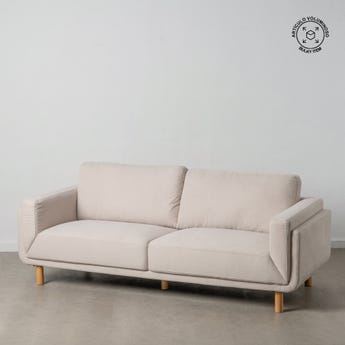 Acrescente personalidade à sua casa com Sofá 3 Lugares Sala Tecido-Madeira Bege 216 X 90 X 82 Cm