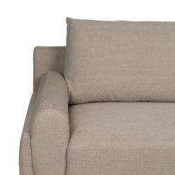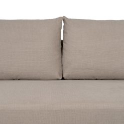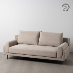 Material: tecido – metal Composição do tecido: 93% poliéster – 7 nylon Estrutura: madeira conglomerada Altura do assento: 44cm. Altura da perna: 14,5cm. Altura do encosto: 50cm. Altura do apoio de braço do assento: 18cm. Profundidade do assento: 60cm. Largura do assento: 170cm. 2 almofadas removíveis com zíper. Cumpre os regulamentos: