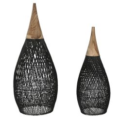 Abajur Set 2 Bambu Teca 35X35X85 Hecho A Mano Preto