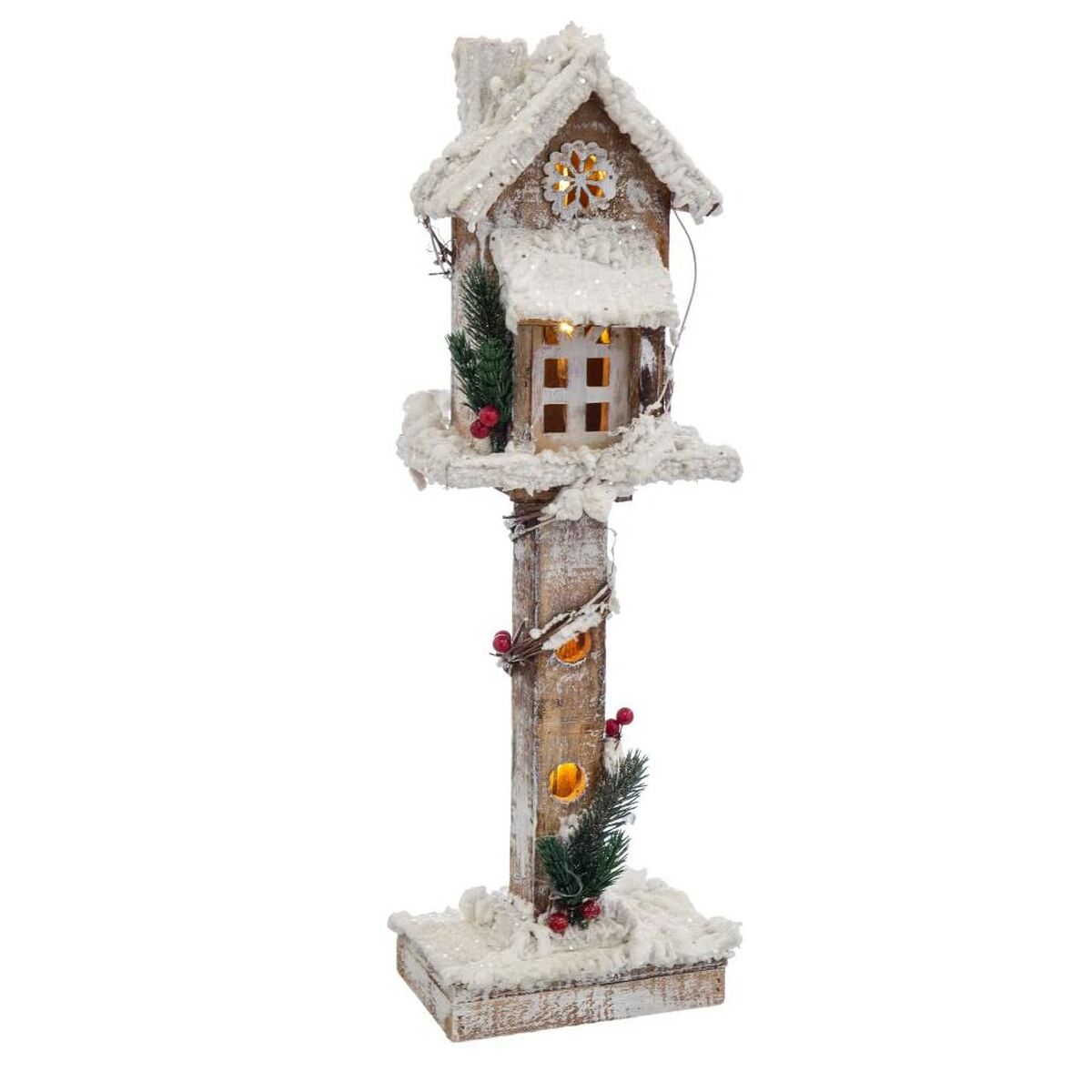 Acrescente magia ao seu Natal com Adorno Natalício Branco Bege Madeira Casa 15 x 9 x 50 cm