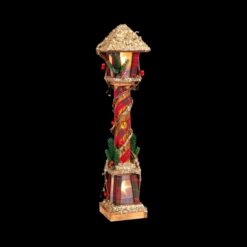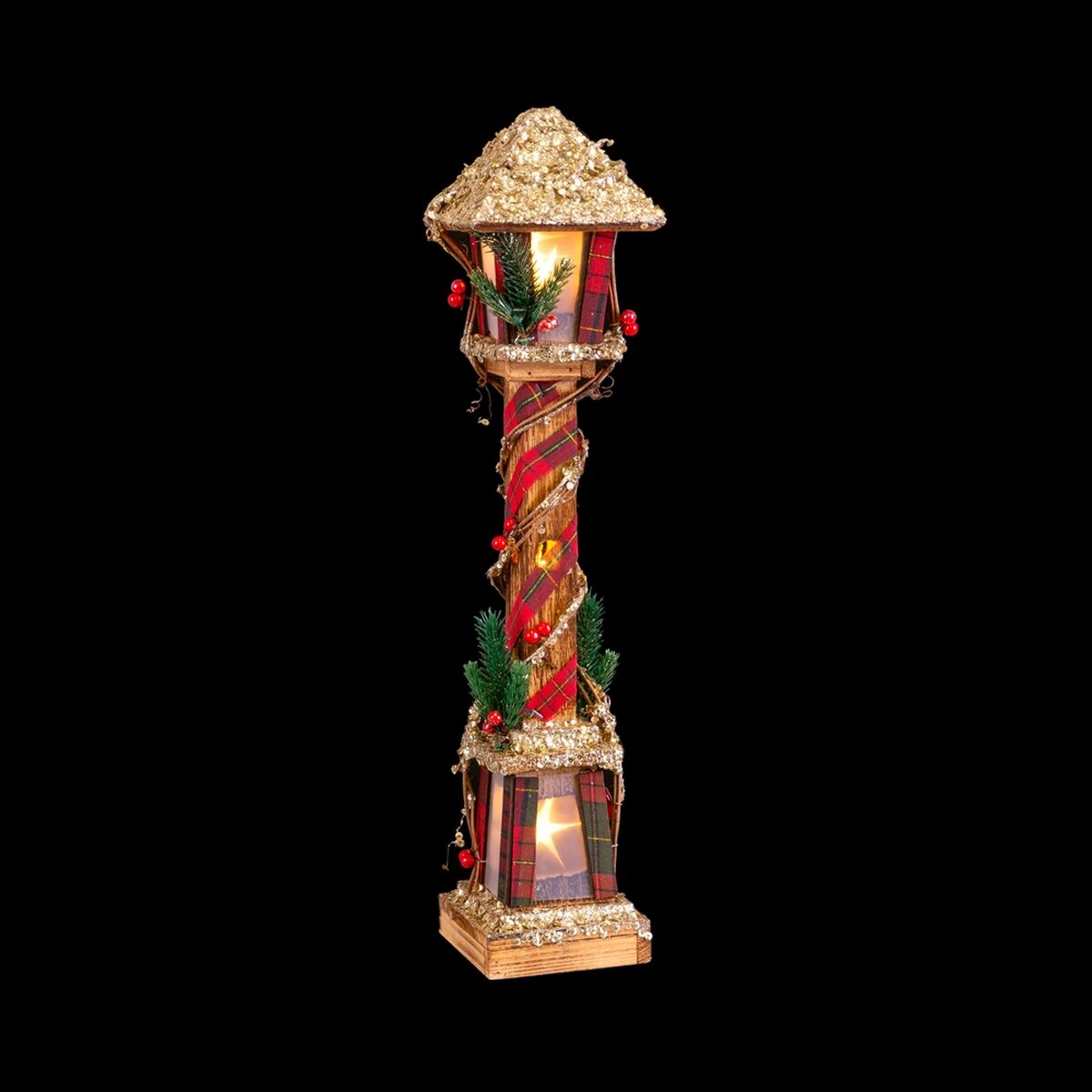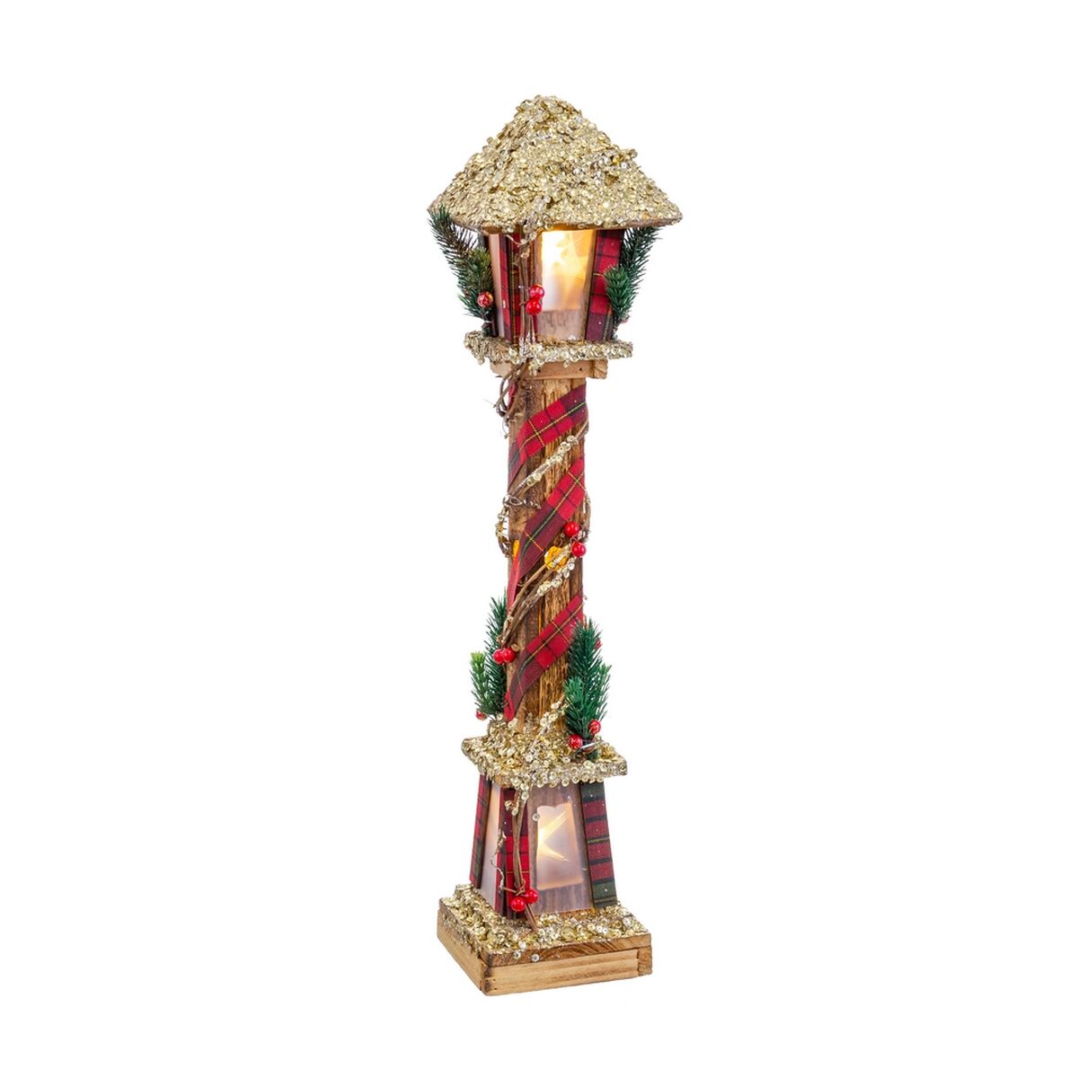 Adorno Natalício Multicolor Dourado Madeira Plástico Tecido Lanterna 13 x 13 x 60 cm