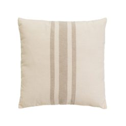 85% algodão – 15% poliéster. Gramatura da capa: 190 g/m². Enchimento: 100% poliéster de fibra oca siliconizada. 280 g. Certificação Oeko-Tex. Almofada sem zíper. Instruções de lavagem: Lavar à máquina a no máximo 40 graus. Não usar alvejante. Secar em secadora em temperatura baixa. Lavar a seco. Não passar a ferro.