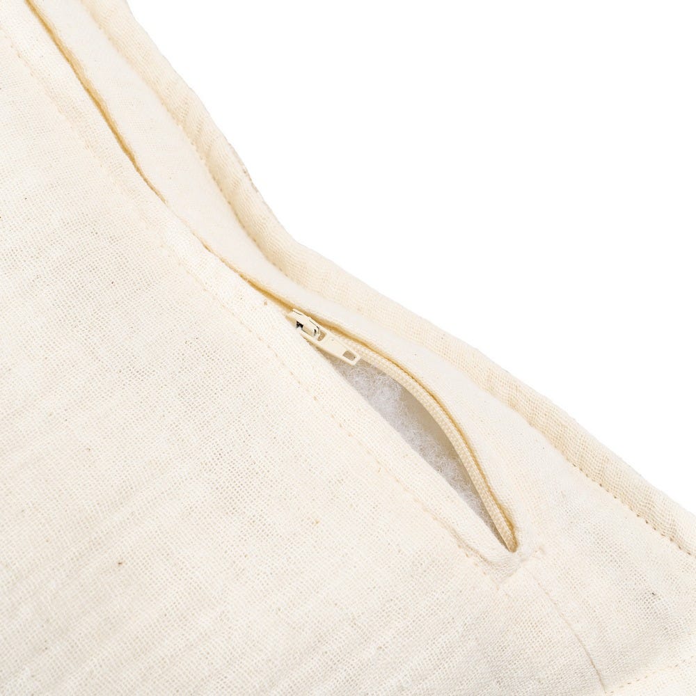 Almofada com enchimento de poliéster. Composição do tecido frontal: 73% viscose, 10% algodão, 17% linho. Composição do tecido traseiro: 100% algodão. Enchimento de poliéster, peso: 500 g. Embalada a vácuo. Instruções de lavagem: – Lavar a uma temperatura máxima de 30ºC. – Não usar alvejante. – Não secar na secadora. – Passar a ferro em temperatura baixa. – Não lavar a seco. Capa removível com zíper.