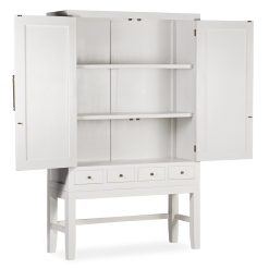 Aparador incluído na coleção Everest. Feito à mão com madeira de mindi e acessórios em bronze. A estrutura é de madeira maciça. Tem 4 gavetas, 2 portas e 2 prateleiras interiores. Inclui gaveta secretária. Sem necessidade de montagem.