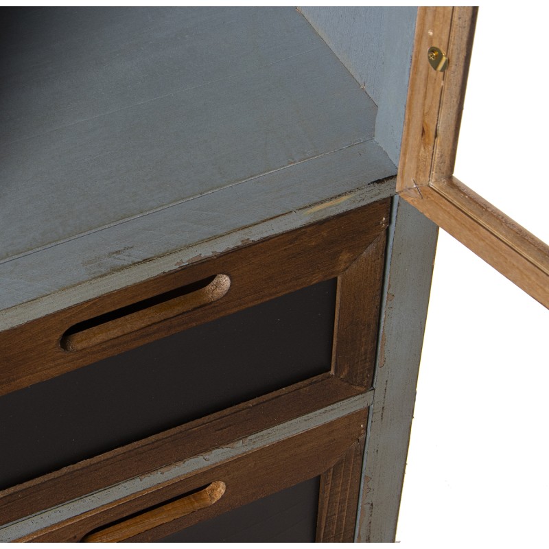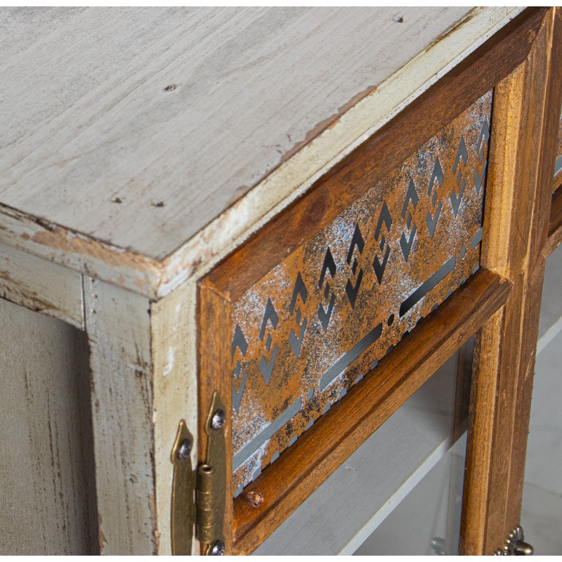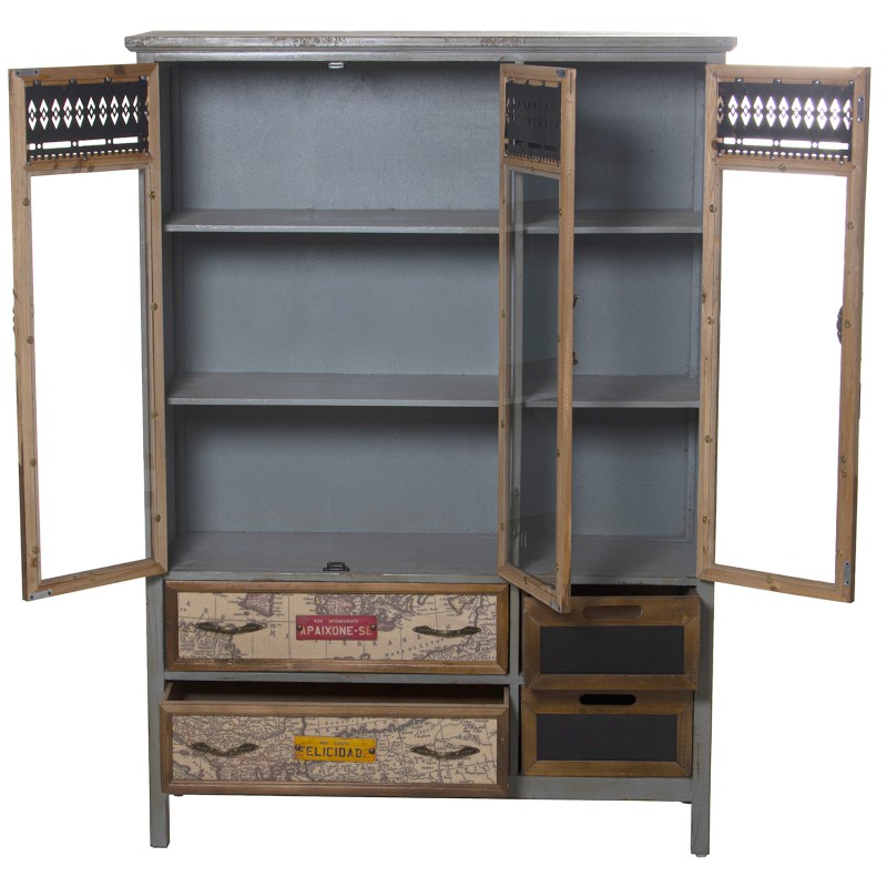 Armário Vitrine com 3 Portas+4Gavetas, Madeira Abeto 93x32x130cm, Alt.Pés:9,5cm
