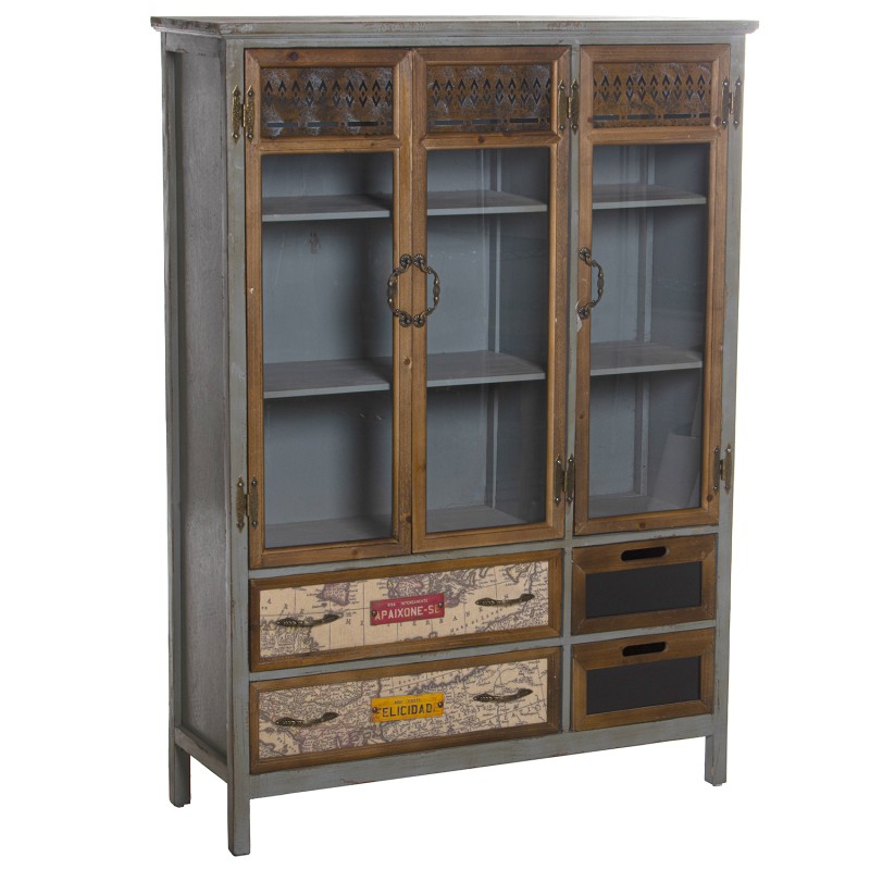 Acrescente Mobiliário de qualidade e design com Armário Vitrine com 3 Portas+4Gavetas, Madeira Abeto 93x32x130cm, Alt.Pés:9,5cm