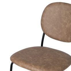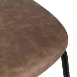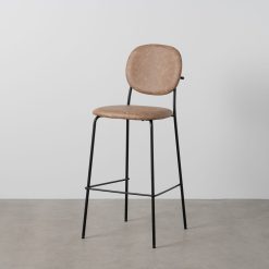 Material: Imitação de couro – ferro Altura do assento: 74cm. Altura da perna: 71cm. Altura do encosto (do assento): 38cm. Assento largo e profundo 40,5cm. Encosto largo. 36cm. Enchimento: esponja de 10mm densidade 25kg/m2 – madeira curva 12mm – tubo de ferro 19×1,5mm. Em conformidade com os regulamentos: EN16139:2013