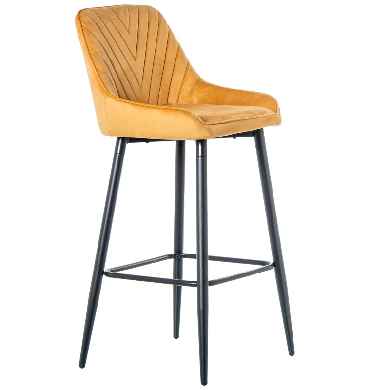 Acrescente Mobiliário de qualidade e design com Banco De Veludo Mostarda, Pernas Metal Preto 45x56x102cm Alt. Assento:72cm (4 unidades)