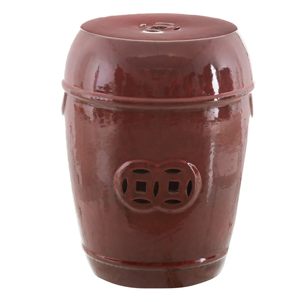 Banco Vermelho Cerâmica Decoração. 35x35x48cm
