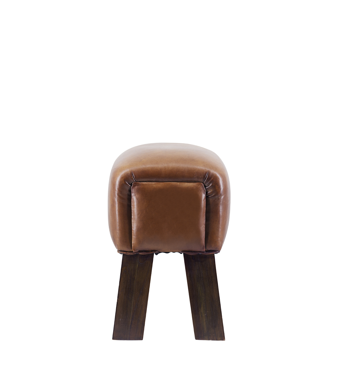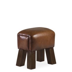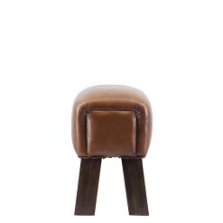 Banqueta de teca e pele 42 x 30 x 45