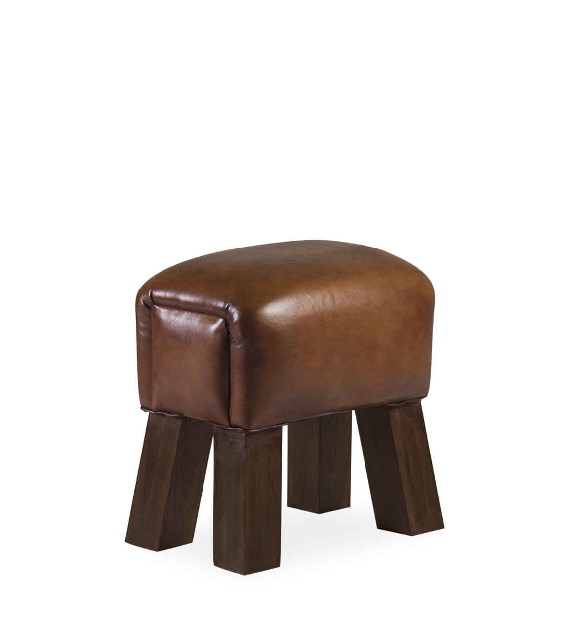 Banqueta retangular incluída na coleção Bancos e Banquetas. Feita à mão com madeira maciça de teca e couro. Sem necessidade de montagem.