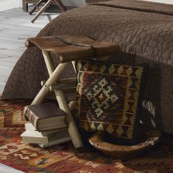Banqueta dobrável de mogno com pele de cabra cor bege 47 x 40 x 45