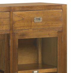 Aparador incluído na coleção Star. Feito à mão com madeira maciça de mindi e acessórios em bronze. Possui 3 gavetas na parte superior do armário, 3 gavetas na parte inferior e 3 portas de vidro com prateleira interior. Sem necessidade de montagem.