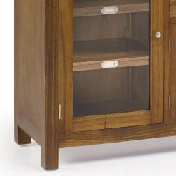 Aparador incluído na coleção Flash. Feito à mão em madeira de mindi, com estrutura sólida e acessórios em bronze prateado. Tem 2 gavetas, 2 portas de vidro com 2 prateleiras interiores e duas portas de madeira. Sem necessidade de montagem.