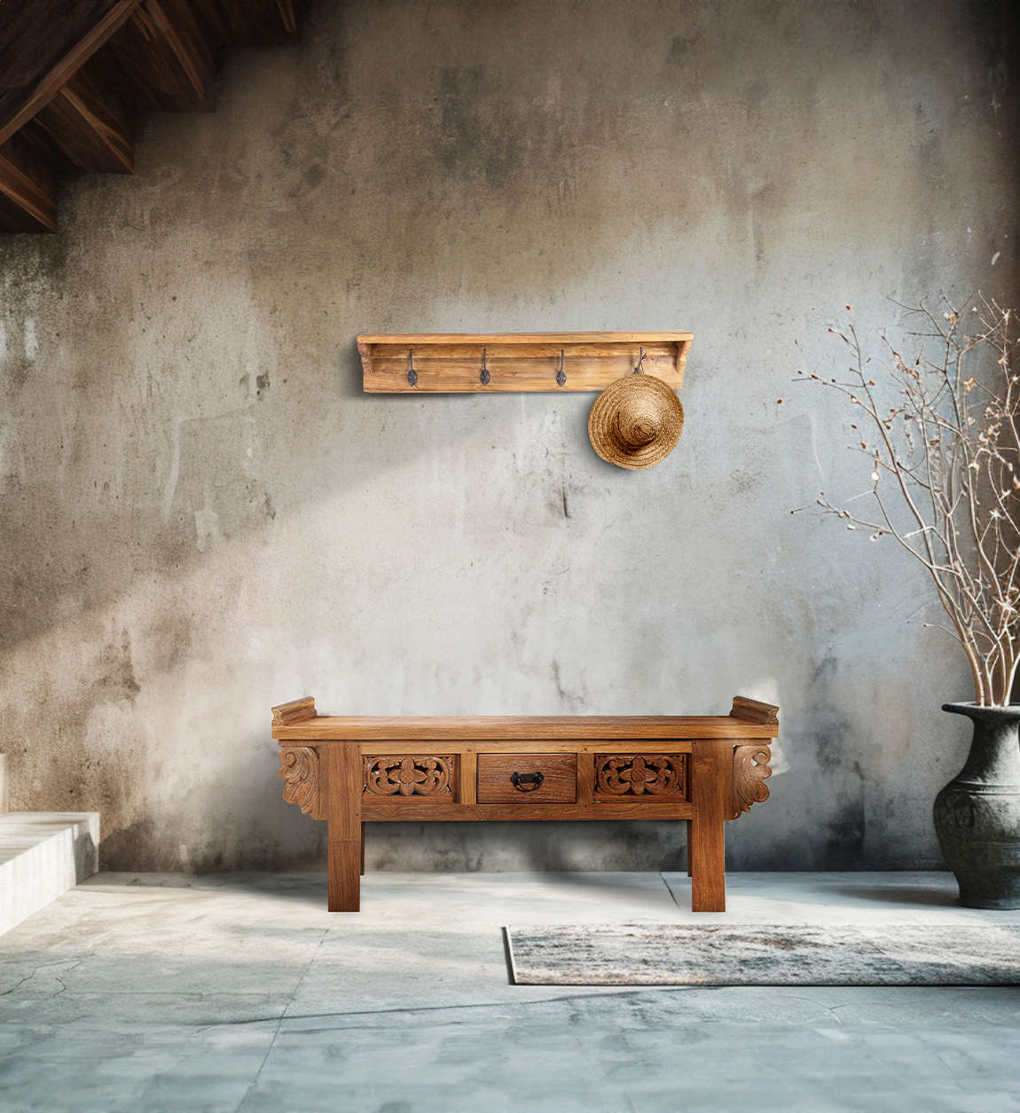 Acrescente personalidade à sua casa com Cabide rústico de teca reciclada 90 x 12 x 17. Este será certamente um mobiliário para a vida toda.