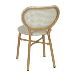 Material: Alumínio, textilene. Altura do assento: 46 cm. Largura do assento: 43 cm. Profundidade do assento: 43 cm. Altura do encosto: 36 cm. Empilhável.