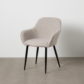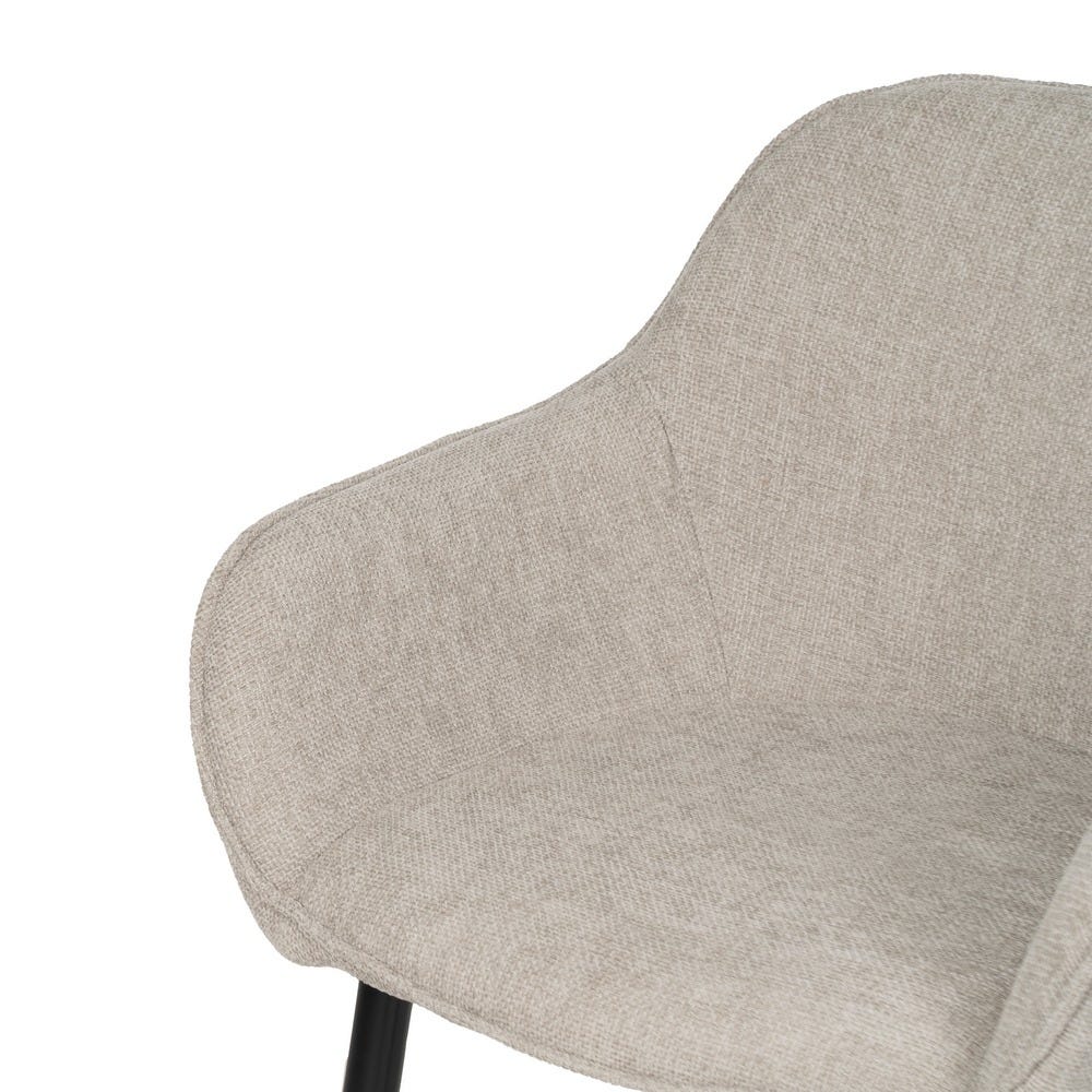 Tecido: Poliéster. Enchimento: espuma Densidade de enchimento: 28kg/m3. Material das pernas: Ferro Altura do assento: 47cm Altura das pernas: 42cm. Altura do encosto: cm. Medidas do assento: cm. Distância entre as pernas: cm. Peso máximo suportado: 140kgs. Não empilhável. Não é necessária montagem. Cumpre a norma EN16139:2013 (Restauração).