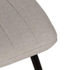 Material: tecido (100% poliéster), metal. Enchimento: espuma, densidade 20gr/m3. Altura do assento: 48cm. Largura do assento: 43cm. Profundidade do assento: 40cm. Altura do encosto: 42cm. Não empilhável. Está em conformidade com os regulamentos EN16139:2013.