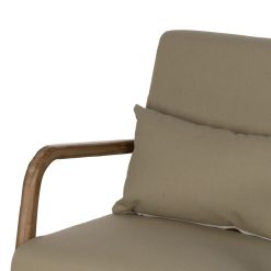 Madeira de borracha. Tecido: 70% Poliéster, 30% Algodão. Altura do assento: 48cm. Medidas do assento: 59x56cm. Altura do encosto: 50cm. Altura da perna: 28cm. Distância entre pernas: 58cm. Peso:470gr/m2 Densidade do assento:30 kg/m3. Densidade do encosto: 24 kg/m3. Peso máximo suportado: 130kgs. Não empilhável. Cumpre os regulamentos europeus UNE EN 12520:2016.