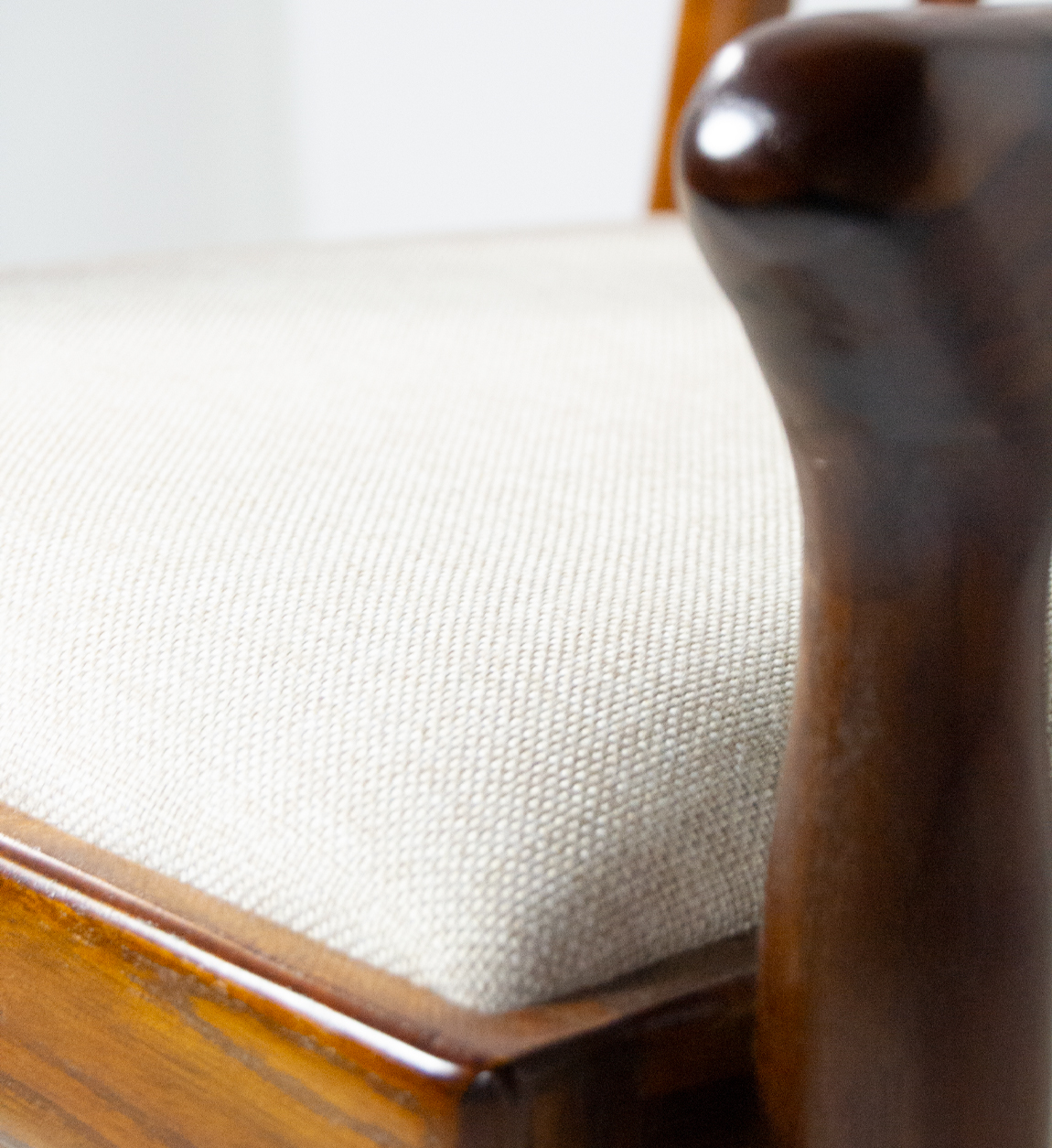 Cadeirão de alta qualidade elaborado em madeira de teca maciça. O seu design clássico proporciona um toque de elegância, destacando-se pela terminação arredondada em todos os seus bordos, enquanto a sua sólida construção garante estabilidade e conforto. O assento está estofado para proporcionar um maior nível de conforto e estilo. Com uma altura de assento de 48 cm e apoios de braço a 58 cm do chão, é uma peça excepcional. Não requer montagem.