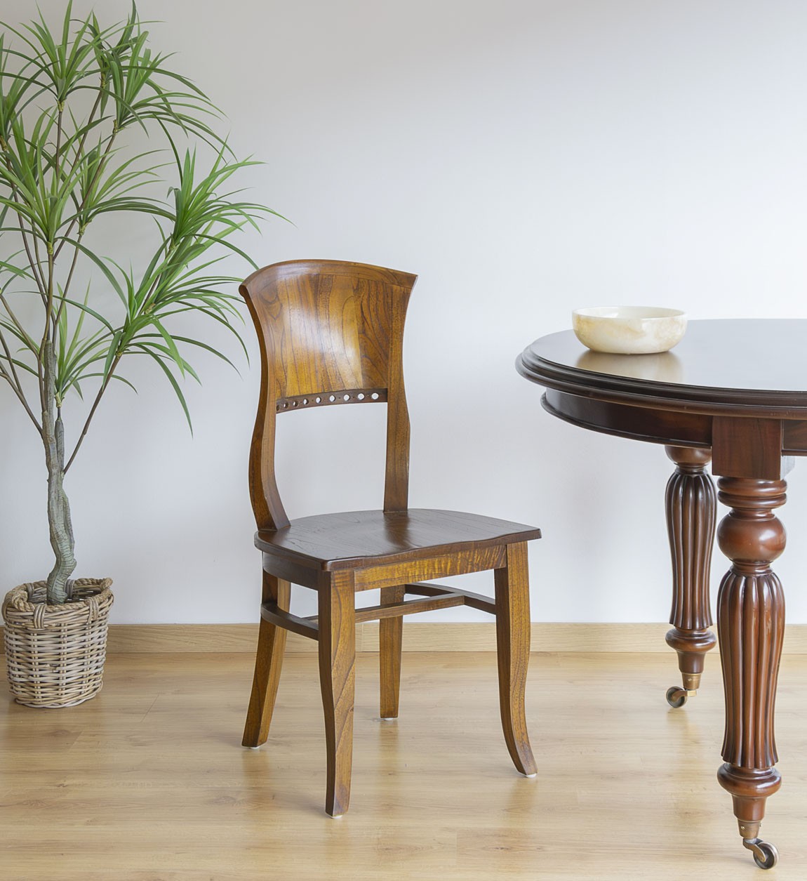 Apresentamos a nossa Cadeira de Madeira de Mindi, uma peça elegante e resistente feita à mão. A altura do assento é de 50 cm. Não requer montagem.