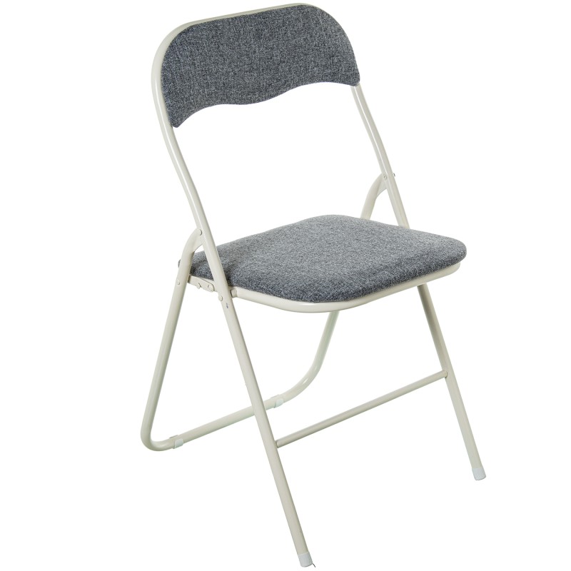 Acrescente Mobiliário de qualidade e design com Cadeira Dobrável Metal Branco / Tecido Cinzento 44x47x80cm Alt. Assento:45cm