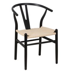 Material: madeira de faia – corda de papel. Altura do assento: 44cm. Altura do encosto: 38cm. Está em conformidade com os regulamentos EN16139:2013