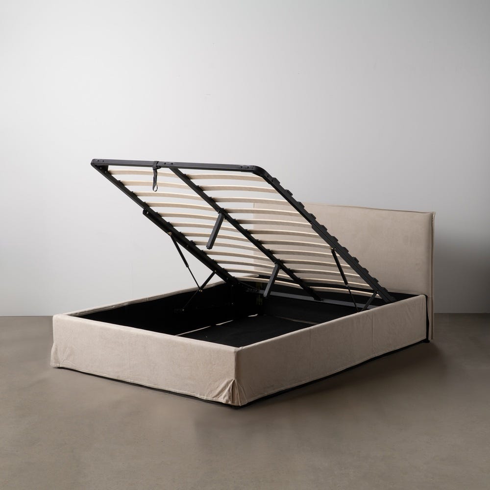 Acrescente personalidade à sua casa com Cama Caixa De Molas Bege Tecido Quarto 166 X 215 X 96 Cm