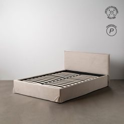 Cama com compartimento removível. Tecido 100% poliéster. Enchimento: espuma. Estrutura: compensado. Adequado para um colchão de 150×200 cm.