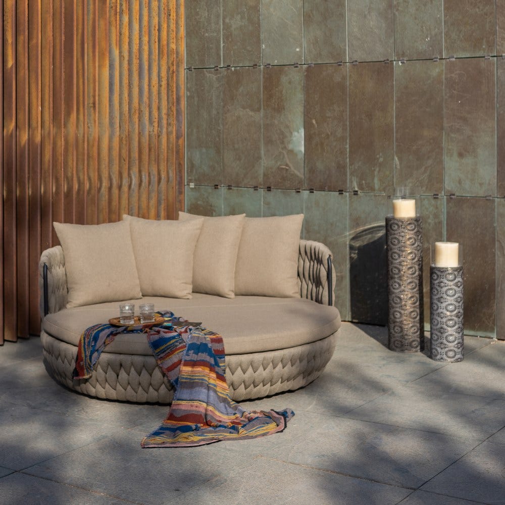O Cama Rebecca em alumínio cor taupe, 185 x 185 x 78 cm é uma peça que combina funcionalidade e design decorativo, ideal para quem procura dar um toque de personalidade ao seu lar. O mobiliário e a decoração são elementos essenciais em qualquer casa, pois para além da sua utilidade prática, refletem o estilo e a identidade de quem a habita.