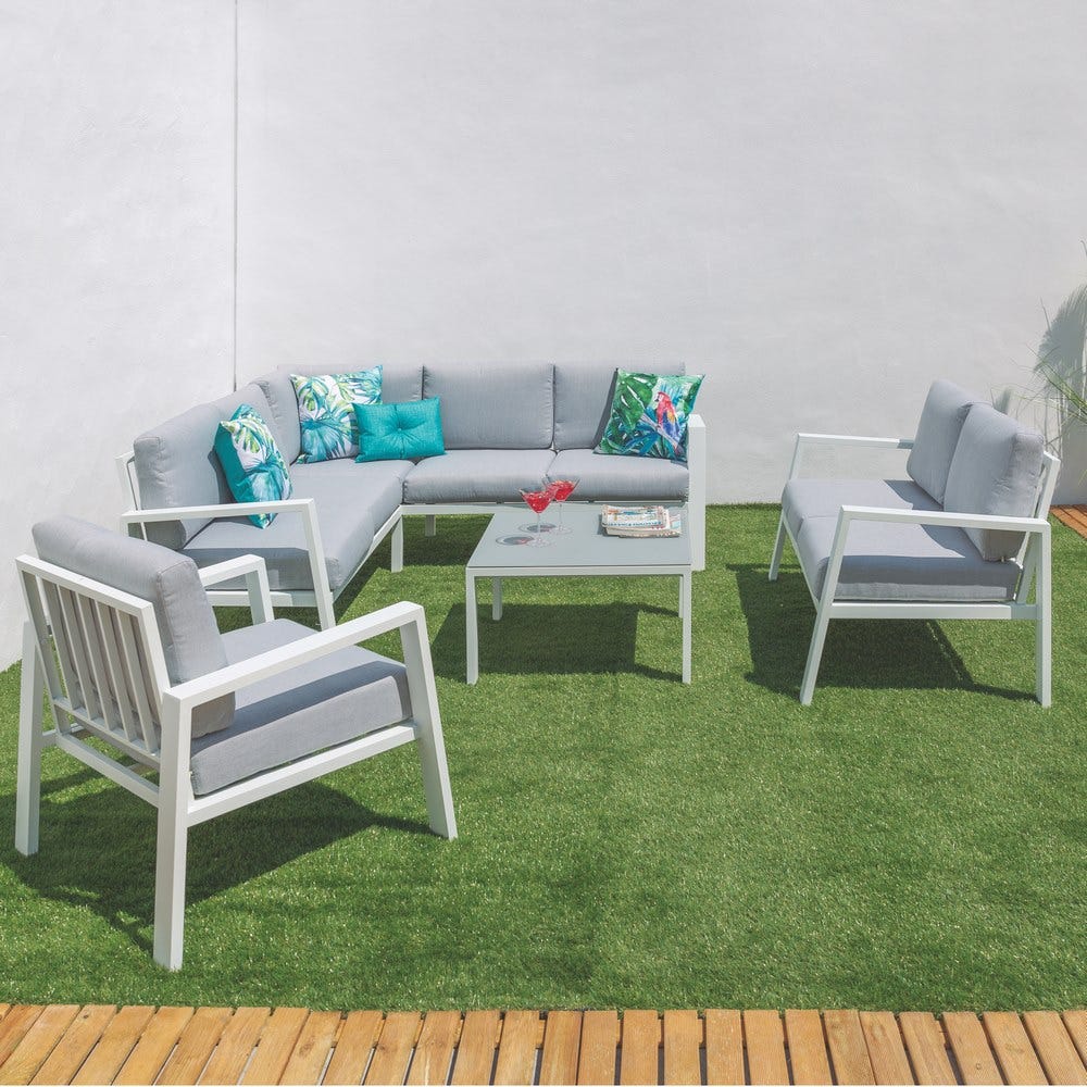 Canapé D’Angle Thais em alumínio branco, 195 x 195 x 73,60 cm