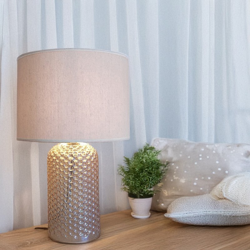 Acrescente Candeeiro De Mesa Em Vidro/sombra Em Tecido