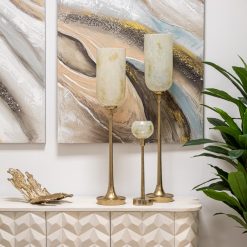 Castiçal De Vidro Com Base De Alumínio Dourado 15x86cm