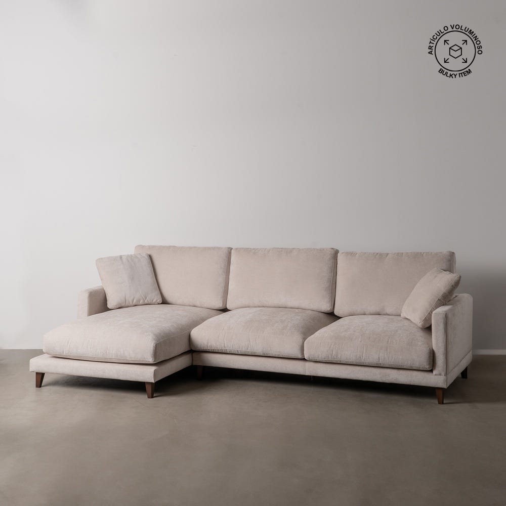 Sofá Chaise Longue Esquerdo Tecido Creme 290 X 160 X 95 Cm