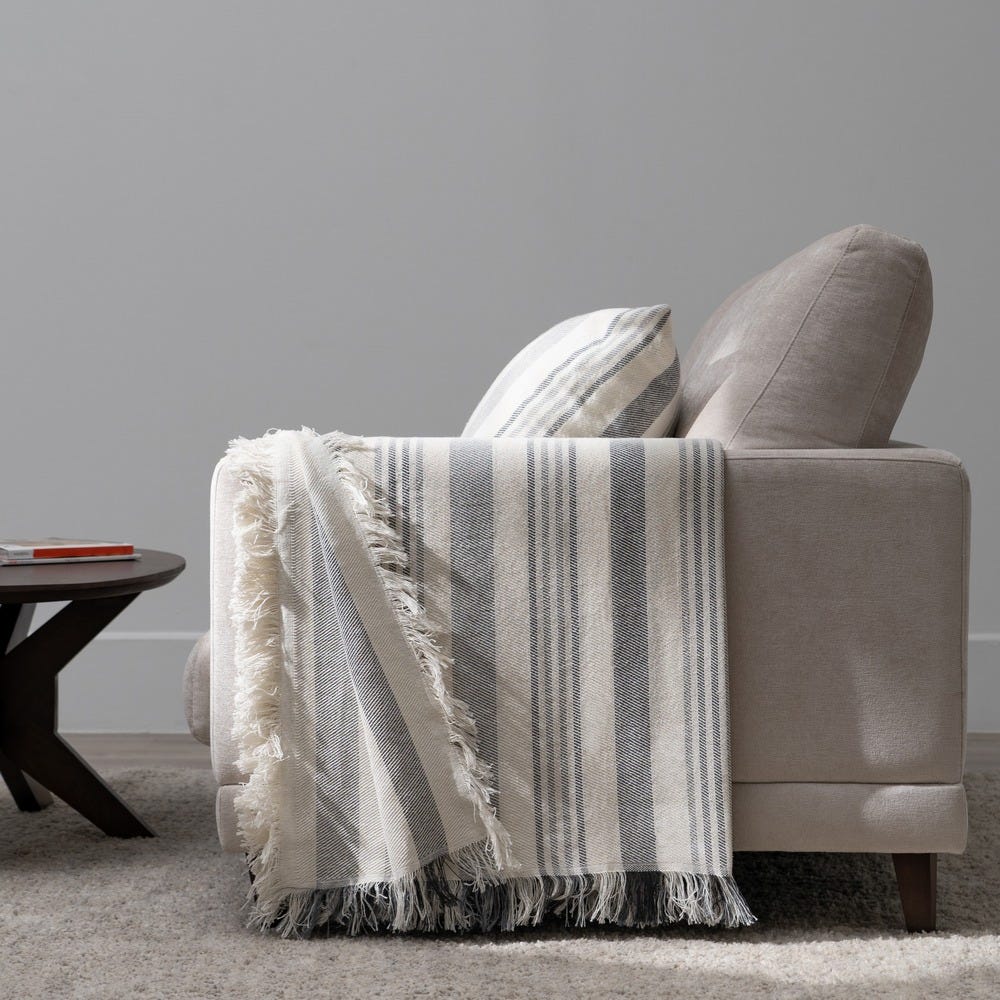 Acrescente personalidade à sua casa com Colcha Listras Bege-Cinza Algodão 200 X 260 Cm
