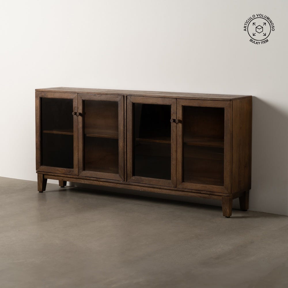 Material: Madeira de mangueira, vidro. Portas: 44 x 67 cm. Altura dos pés: 12 cm.