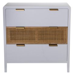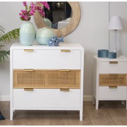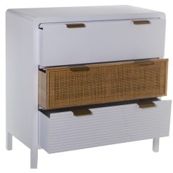 Acrescente Mobiliário de qualidade e design com Cómoda Madeira 3 Gavetas Branco/ratán 80x40x82cm, Abeto+dm+ratán