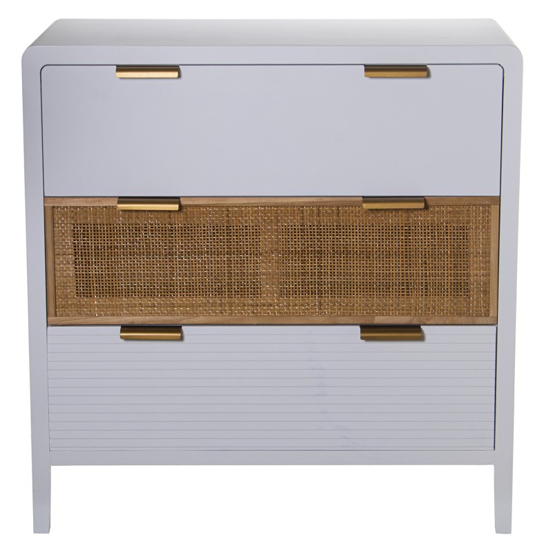 Cómoda Madeira 3 Gavetas Branco/ratán 80x40x82cm, Abeto+dm+ratán