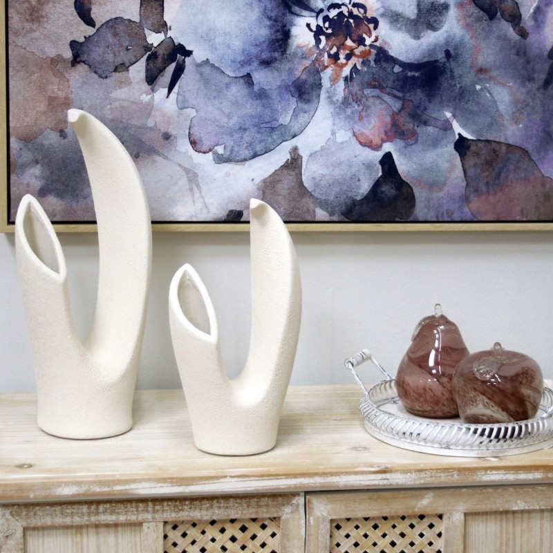 Acrescente Conjunto 2 Vasos Cerâmica Beige Arena 19x14x42+18x13x33cm
