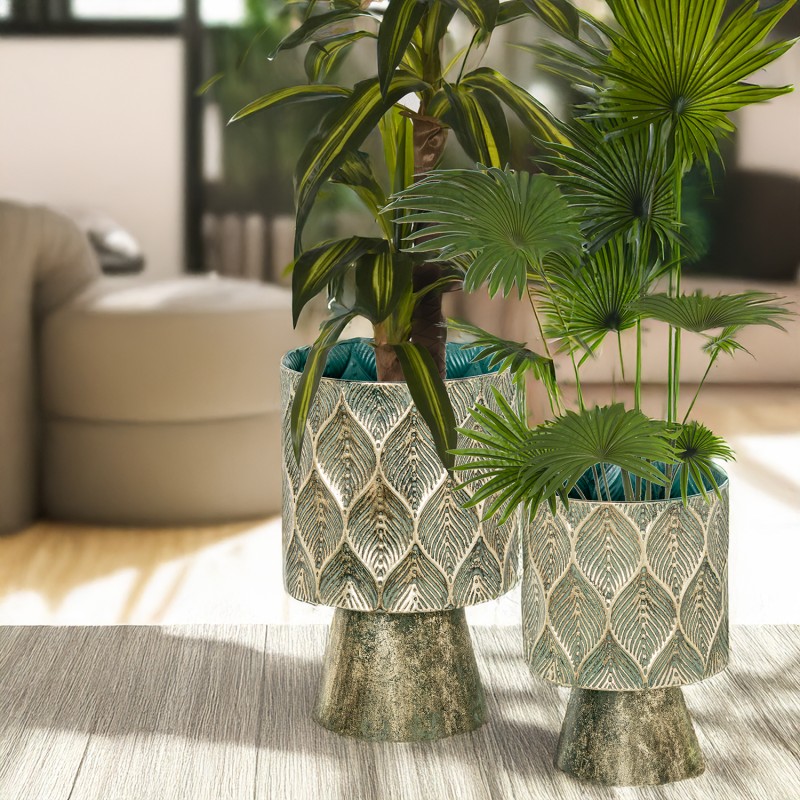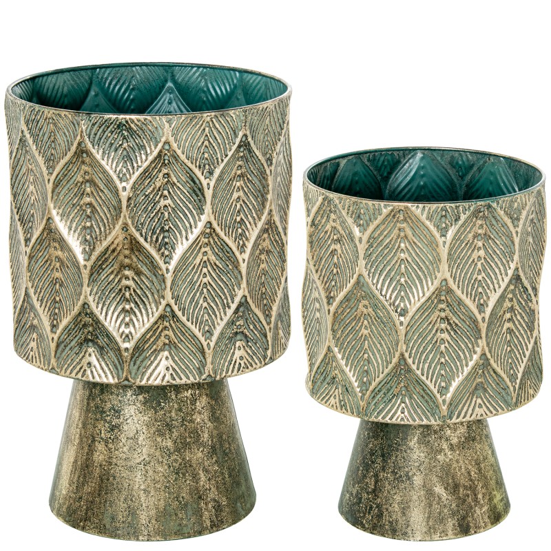 Acrescente Conjunto 2 Vasos De Metal Antigo