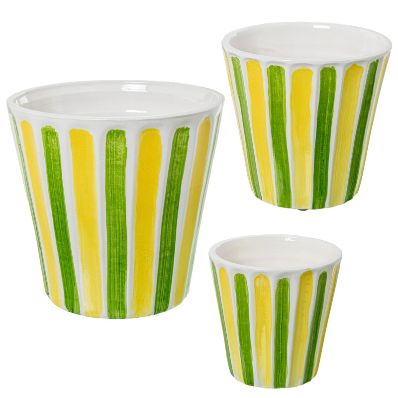 Conjunto 3 Vasos Cerâmica Amarillo/verde 17×17+22×21+28x27cm