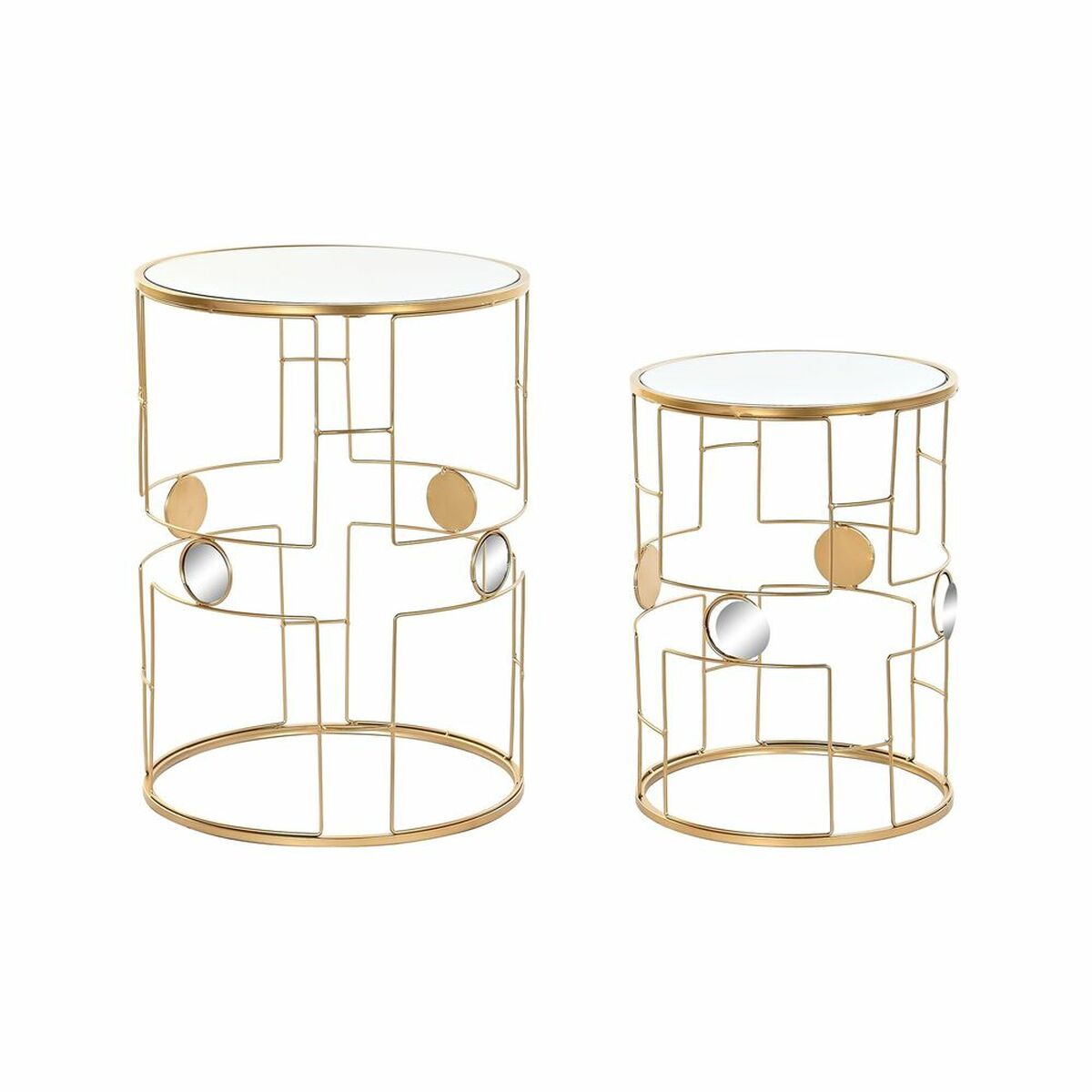 Acrescente personalidade à sua casa com Conjunto de 2 mesas pequenas Espelho Dourado Metal (40 x 40 x 54,5 cm) (2 pcs)