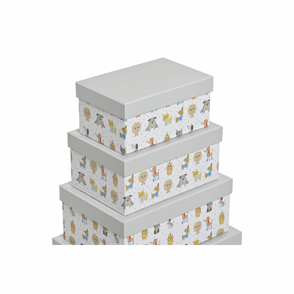 Conjunto de Caixas de Organização Empilháveis Cinzento Animais de Estimação Cartão (43,5 x 33,5 x 15,5 cm)