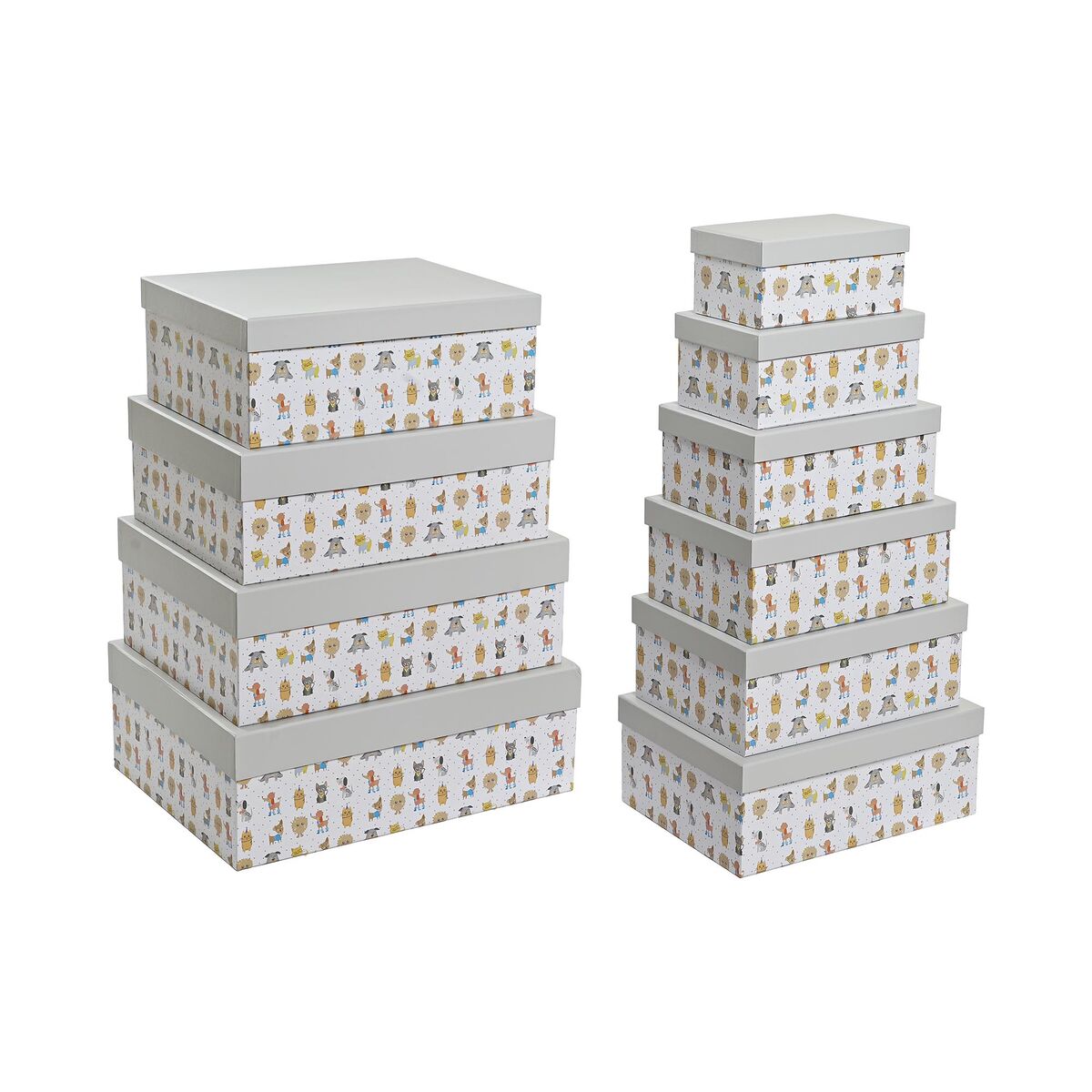 Acrescente personalidade à sua casa com Conjunto de Caixas de Organização Empilháveis Cinzento Animais de Estimação Cartão (43,5 x 33,5 x 15,5 cm).