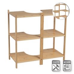TAMPO DE BAMBU DE 10 MM. MÓVEL DE LAVATÓRIO AUTÔNOMO. PRATELEIRA SEM ALTURA AJUSTÁVEL. MEDIDAS DA PRATELEIRA: 60X30X1 CM. DISTÂNCIA ENTRE AS PRATELEIRAS: 24 CM. MEDIDAS DA PRATELEIRA PARA ENCAIXE NA PIA: 21X17X58 CM. CADA PRATELEIRA SUPORTA 15 KG.