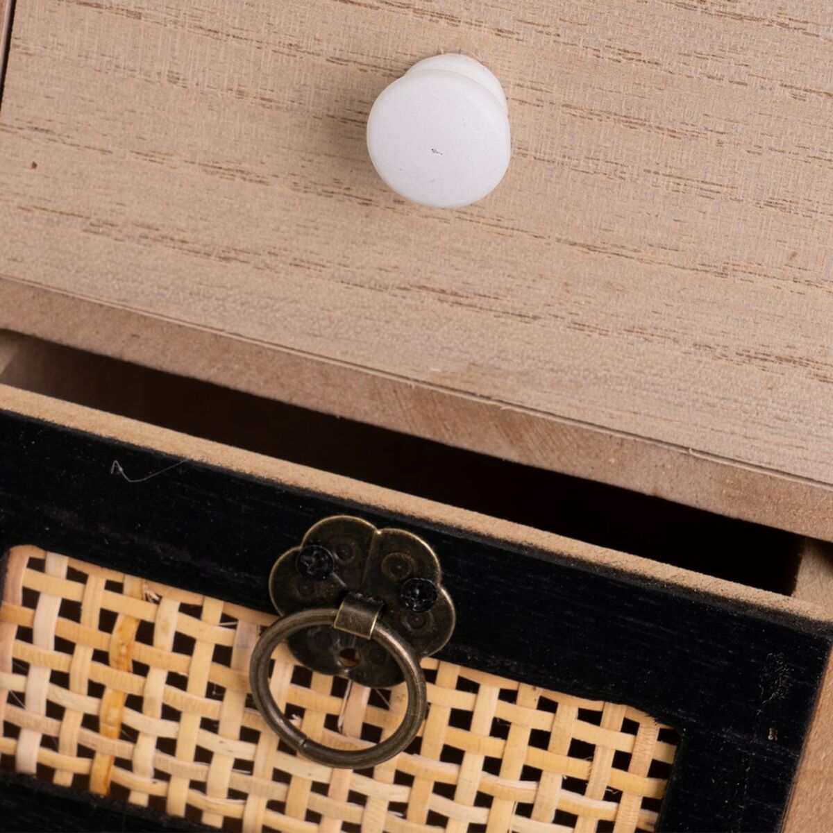 Guarda-Joias HEARTS Branco Preto Natural Madeira Cana Plástico Madeira MDF 22 x 10 x 25 cm