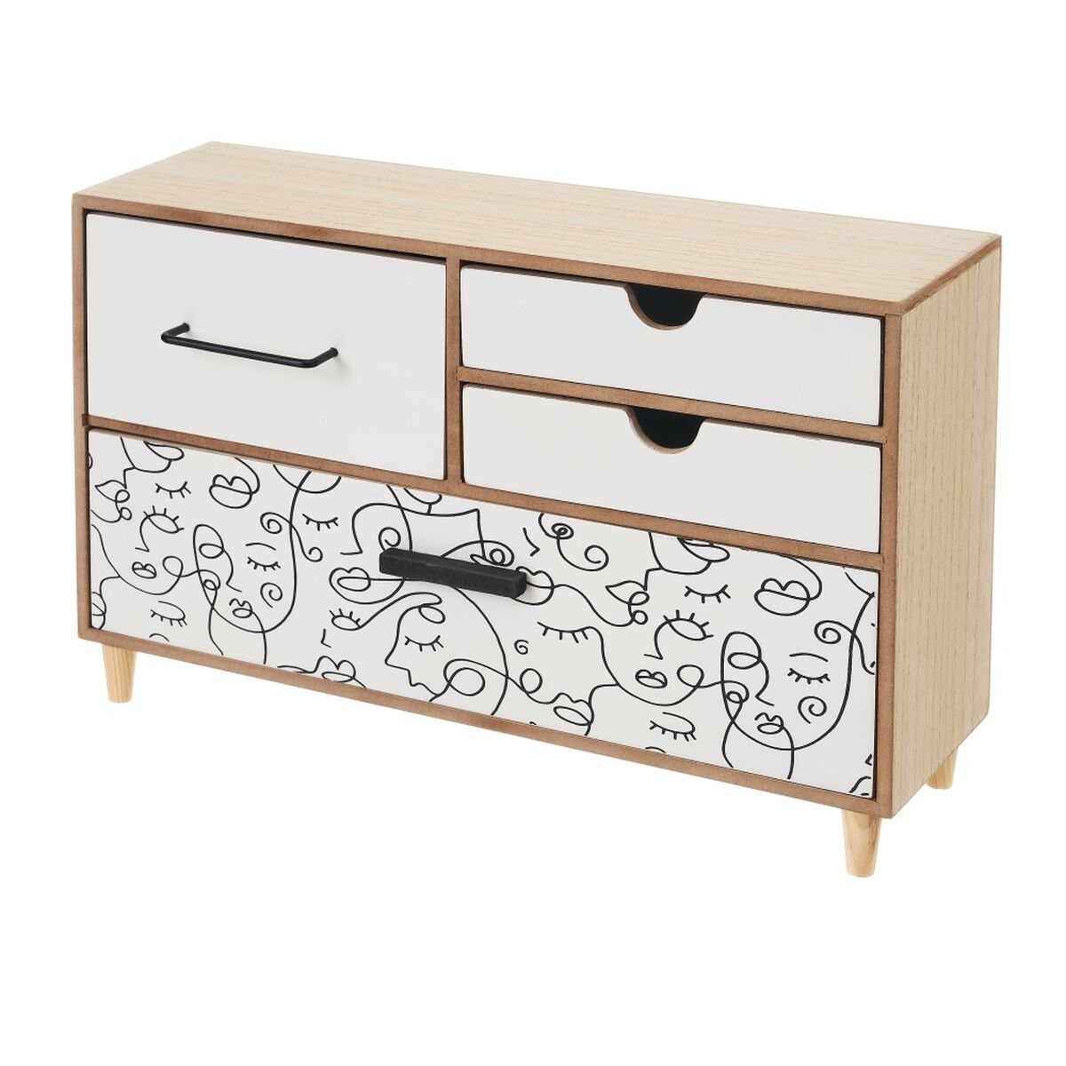 Acrescente personalidade à sua casa com Guarda-Joias ONE LINE Branco Preto Natural Madeira MDF 36 x 11 x 23 cm